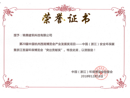 中國安全環保展暨浙江首屆環保博覽會突出貢獻獎