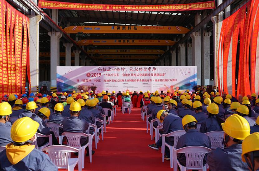2019年11月15日上午8:28,“首屆中國長三角地區裝配式建筑職業技能邀請賽”暨“錦蕭杯”中國長三角地區裝配式混凝土預制構件職業技能競賽-浙江分賽區預賽在錦蕭建筑科技有限公司海鹽裝配式預制構件生產基地盛大開幕。