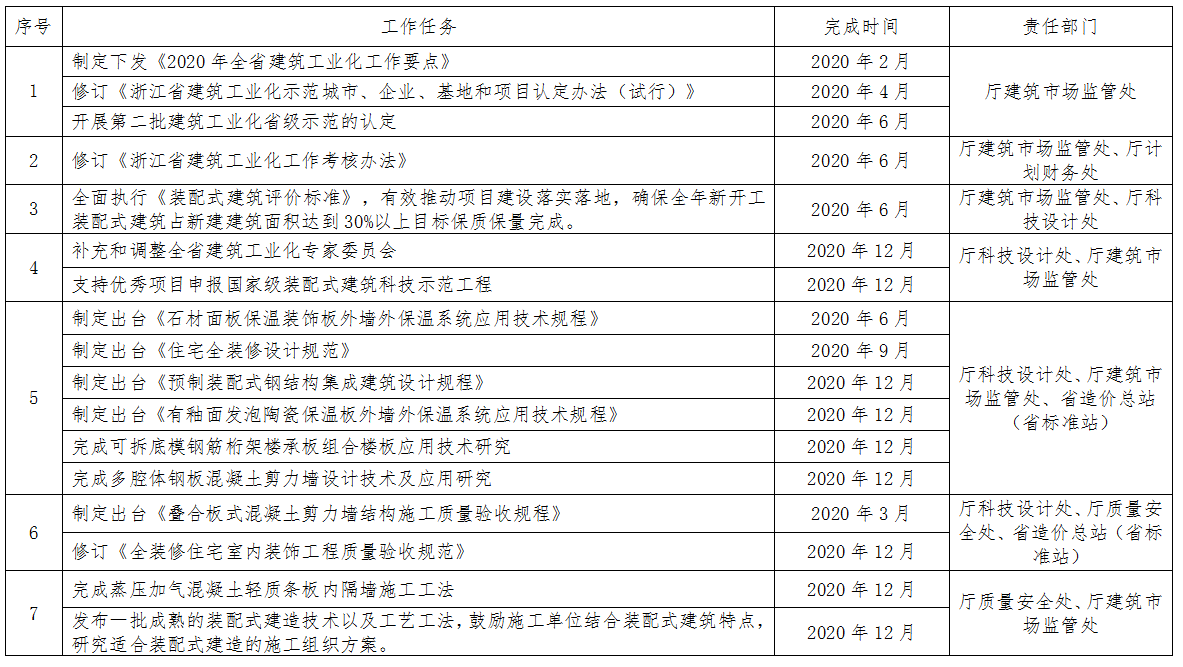 2020年全省建筑工業(yè)化工作任務(wù)分解表
