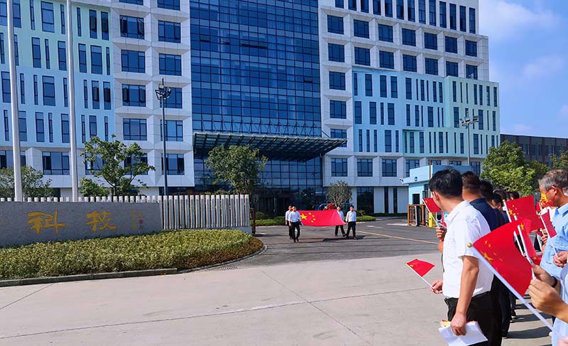 9時28分,升旗儀式正式開始。在眾人的注目下,四名旗手護衛(wèi)著國旗入場。伴隨著激昂的《義勇軍進行曲》,鮮艷的五星紅旗冉冉升起。緊接著,在《明天會更好》的動人旋律中,錦蕭科技司旗也緩緩升起。鮮紅的國旗和錦蕭的司旗在公司生產(chǎn)基地上空迎風(fēng)飄揚,給員工堅定的信念和無限的力量!