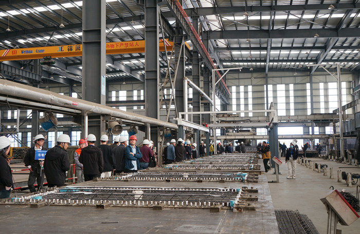 作為本次論壇觀摩企業之一,23日上午,與會行業協會領導、企業代表、專家學者等近150人走進錦蕭科技。走出會場,走進現場,實地探討裝配式預制構件智能制造與綠色發展新思路。錦蕭科技董事長兼總經理李軍、總工程師王建忠等公司領導陪同參觀。